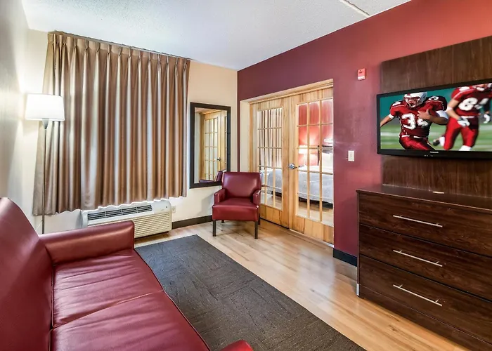 Cradle of Aviation Museum lässt sich in circa 10 Minuten mit dem Auto vom Hotel aus erreichen. Veterans Memorial, ein idealer Ort, um die Gegend zu erkunden, befindet sich in ca. 3,1 km Entfernung vom Red Roof Plus Long Island - Garden City. Roosevelt Field Mall ist 16 Fußminuten vom Hotel entfernt. Die Bushaltestelle East Gate Boulevard & Zeckendorf Boulevard ist in etwa 300 Meter Entfernung.